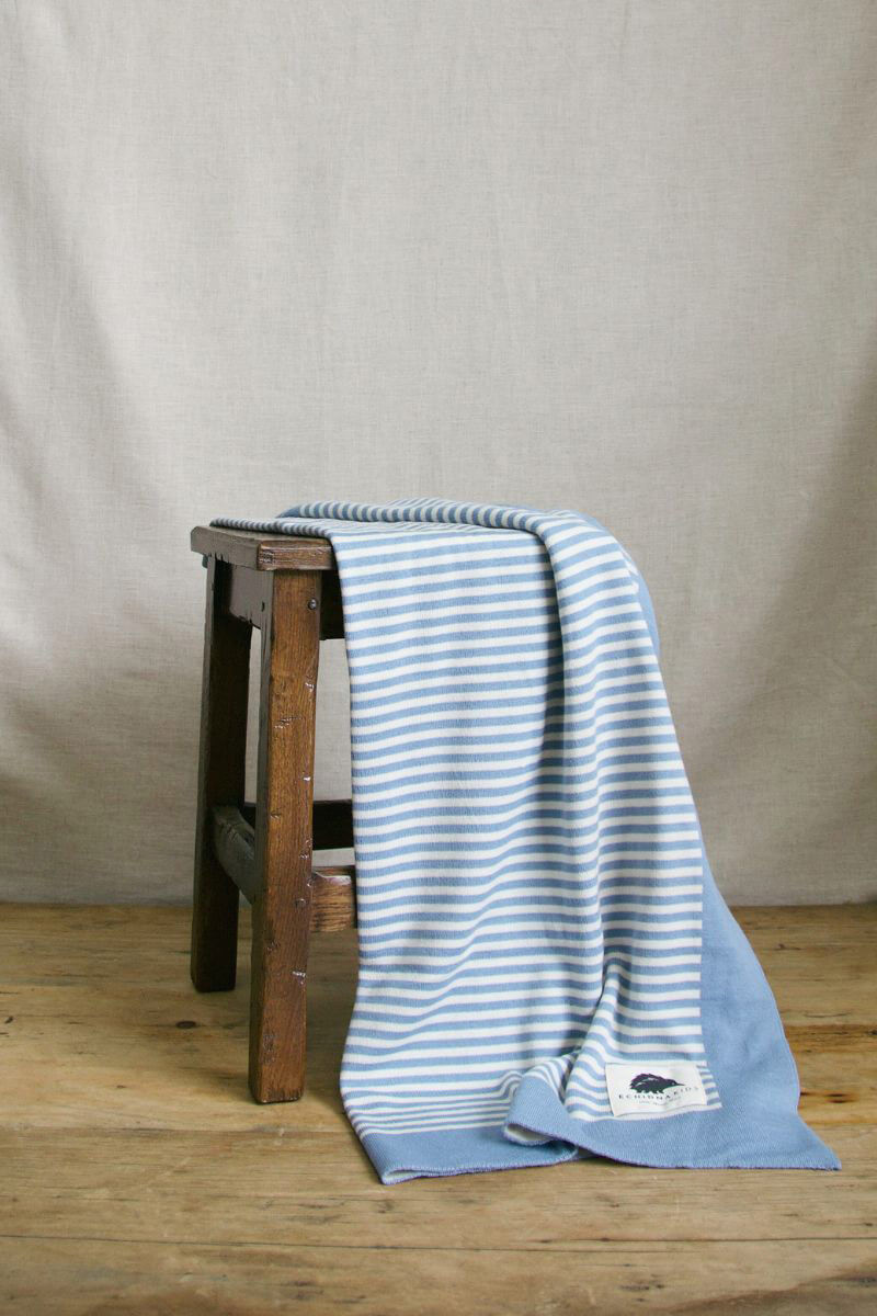 Merino Wool Blanket - Stripe Pattern - Light Blue and Natural